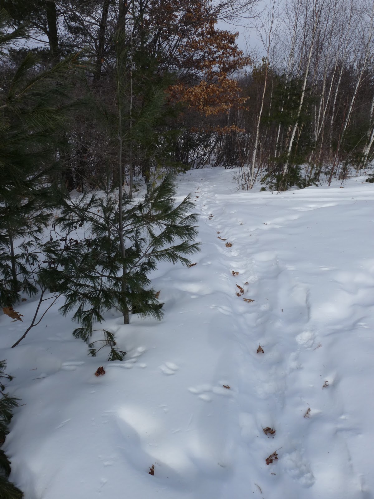 Here's a shot of critter tracks. This is all I've got to show. I haven't seen a deer in months! It's still nice to get out and poke around the woods. Cabin fever is setting in!